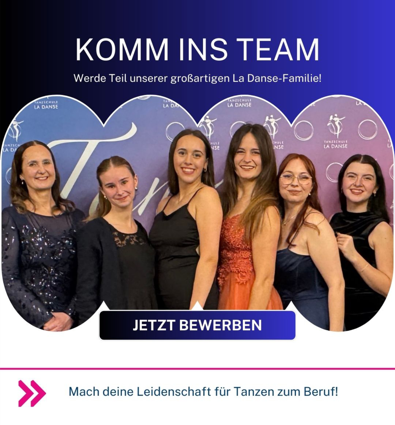 Wir suchen motivierte und begeisterte Bewerber und Bewerberinnen für eine Ausbildung zum/zur Tanzlehrer/in in unserer Tanzschule!